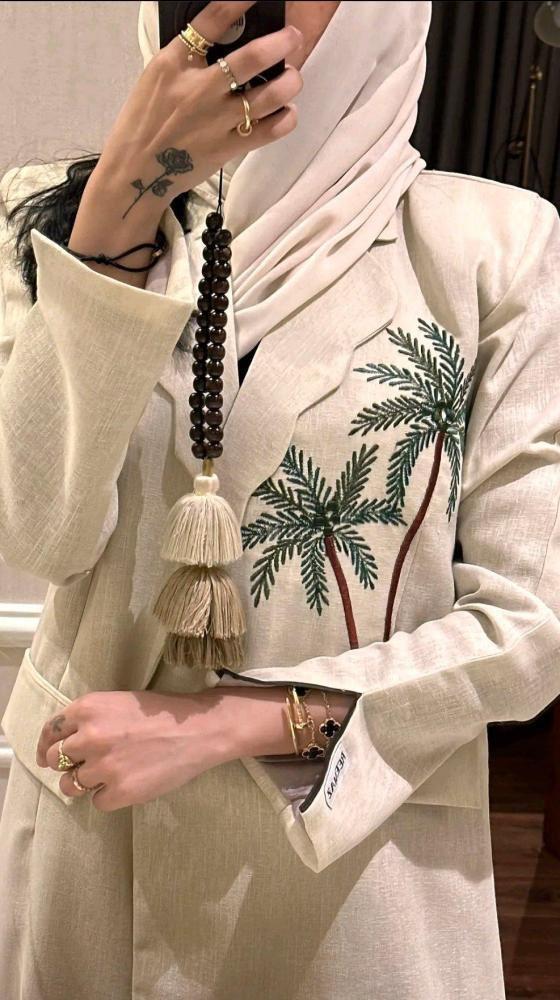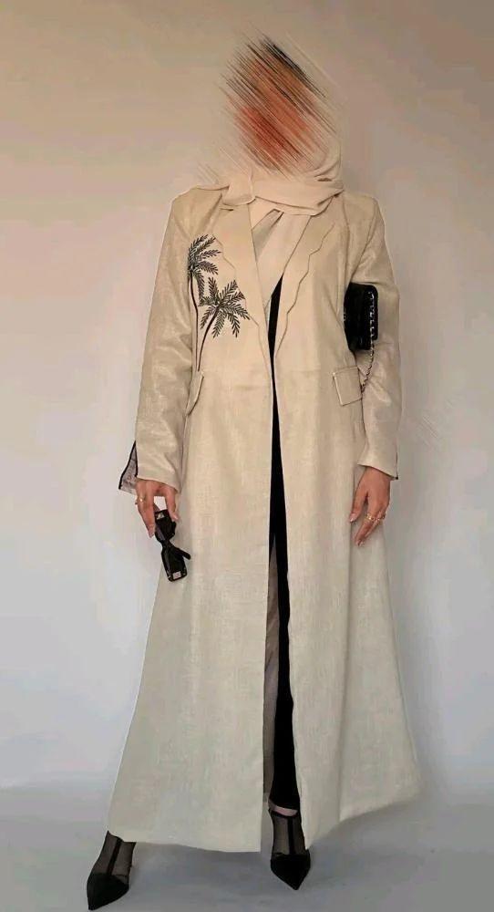 تميزي بإطلالة أنيقة وعصرية مع هذه العباية المصممة من قماش الينن الطبيعي، بلون بيج أنيق ، لتمنحك مظهراً متكاملاً وراحة طوال اليوم.